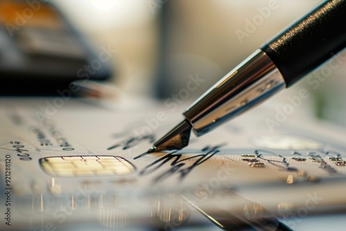 A hand holding a pen is seen signing the back of a credit card, Imprint of a signature on the back of a credit card