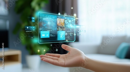 A hand holding a tablet with a blue screen that has a lot of icons. Generative AI