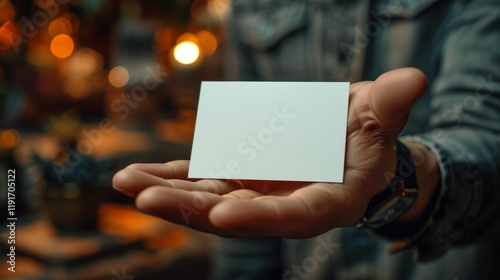 A hand holding a white card with no writing on it