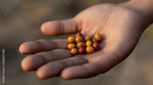 A Hand Holds Ripe Coffee Beans Ready For Harvest