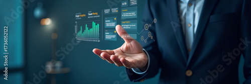 A hand hovers above a sleek dashboard, displaying live notifications for tasks and alerts, optimized for clear communication and copy space for messaging.