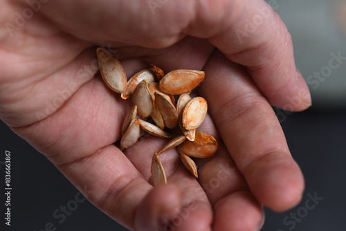 A handful of hokkaido pumpkin seeds