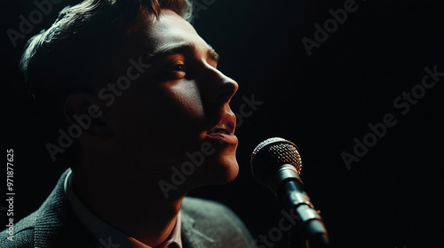 a handsome young man singing into a microphone, a portrait