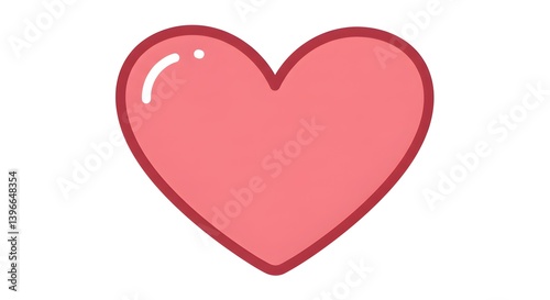 A Heart Illustration with Bold Outline and Glossy Reflection on Isolated White
