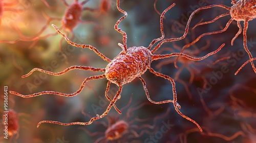 A highly detailed and realistic close-up of this bacteria: **Borrelia burgdorferi** - Causes Lyme disease, transmitted by ticks.