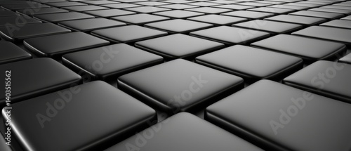 A highly structured and minimalist digital artwork featuring a precise grid of black squares with a strong sense of perspective and depth.
