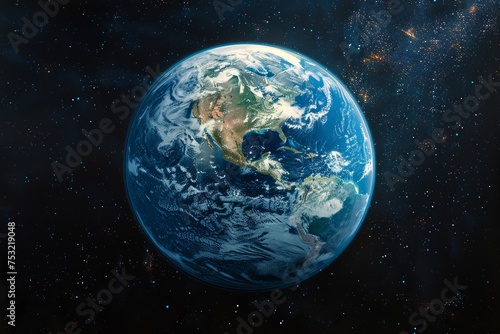 A high-quality image of Earth against a backdrop of a dense starfield showing the vastness of space