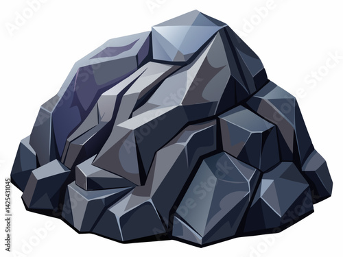 A high-quality vector illustration of a dark basalt rock with angular shapes and matte surface, isolated on a white background.