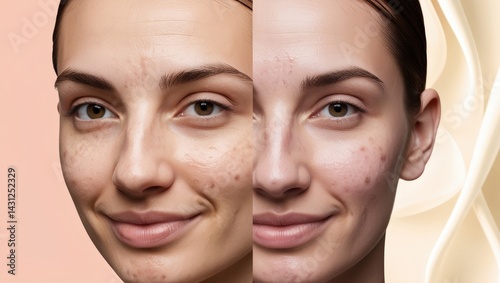 A high-resolution facial close-up featuring a young woman with mild skin imperfections, perfect for themes about dermatology, skincare, and self-care