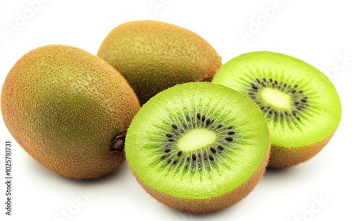A high-resolution image of perfectly ripe, vibrant green kiwi fruits isolated on a pure white background.