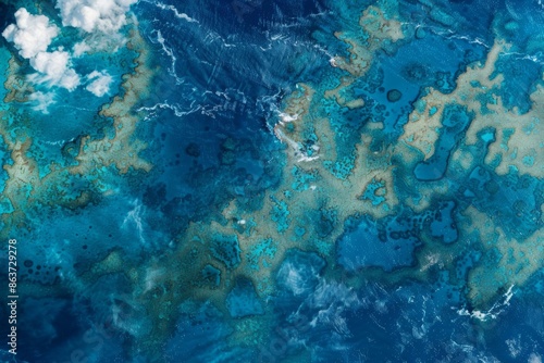 A high-resolution satellite view showcasing vibrant coral reefs in clear ocean waters