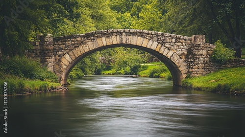 A historic stone bridge spanning a peaceful river, a fine example of classic architecture.