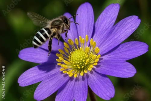 A Honeybee Collects Nectar from a Purple Flower