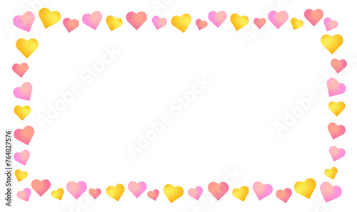 a horizontal frame made from colourful gradient hearts, on white background. could be used for greeting cards, invitations, banners. suitable for mother's day, valentine's day, anniversary greetings.