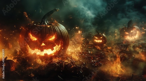 A Jack-o'-Lantern Burning in a Fiery Halloween Night