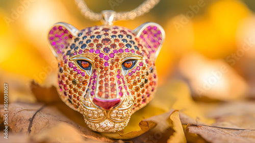 A jeweled animal pendant necklace on velvet, showcasing rich autumn colors for World Animal Day.