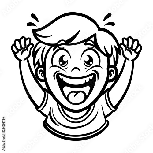 A kid with joyful expressions, glyph style sticker