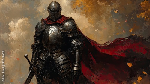 A Knight in Full Plate Armor with a Red Cloak and Sword