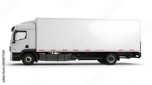 A large modern box truck with clean lines and a company logo placeholder, isolated on a white background