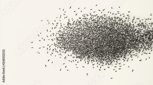 A large swarm of small black insects moving chaotically on a white surface, creating a striking visual
