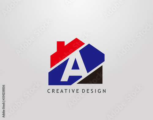 A Letter Logo. house strip shape with negative letter A, Real Estate Architecture Construction Icon Design.
