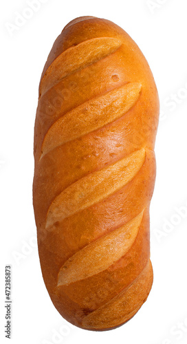 A loaf of bread on a white background. Top view. Isolate.