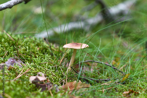 .A lone mushroom growing in the forest.