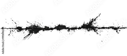 A long horizontal line of ink splashes on white paper,