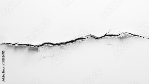 A long, horizontal tear in a white surface. The tear exposes a dark line and frayed edges