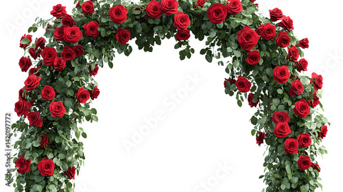 A Lush Climbing Rose Vine with Deep Red Flowers Isolated on Transparent Background