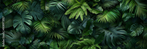 A lush green forest with many leaves and vines
