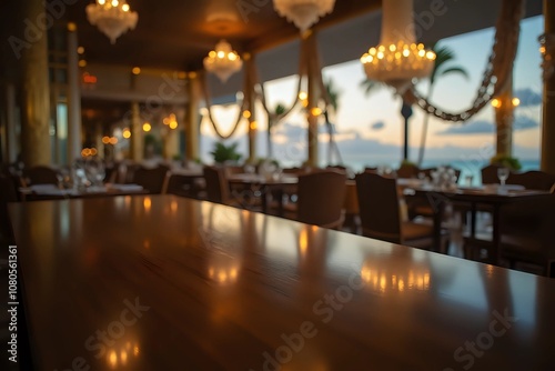 A luxurious, dimly lit photo of a wooden table