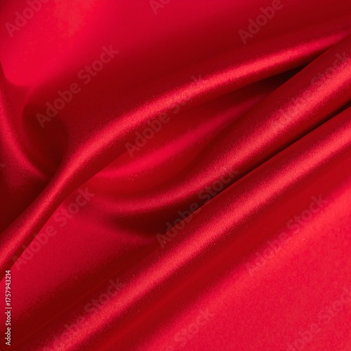 A luxurious red satin fabric drapes elegantly, showcasing its smooth, glossy surface that catches the light, creating a rich, vibrant appearance.