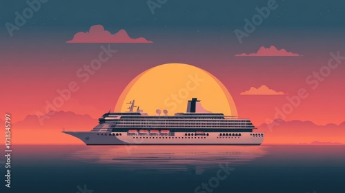 A luxurious ship sailing into the sunset is showcased in a vibrant cruise flyer design, complete with ample space for text to promote a dream vacation at sea