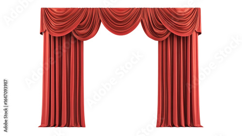 A luxurious velvet red curtain draped elegantly, prepared for an upcoming theatrical performance in a venue