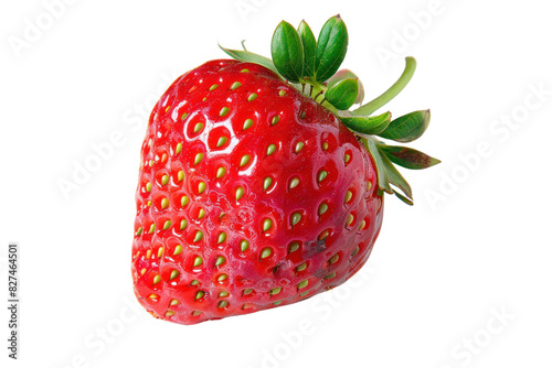 A macro shot of a single strawberry, its plump, red flesh bursting with juicy goodness, revealing intricate details of its seeds and texture.Isolated on white background