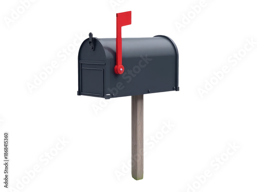 A mailbox with a bright red handle, suitable for rural or country-themed images