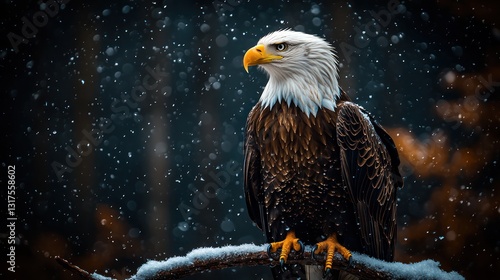 A Majestic Bald Eagle Perched On Snowy Winter Branch