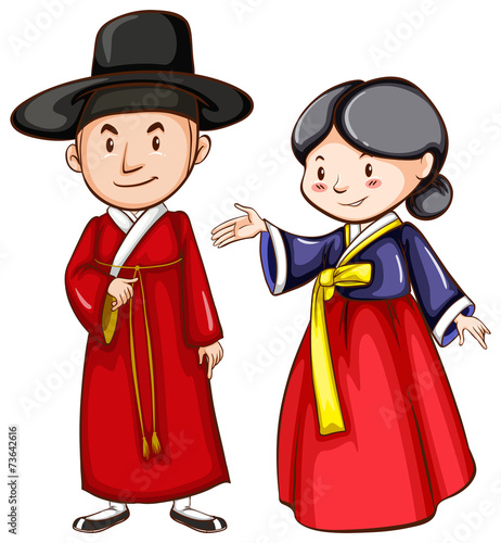 A male and female wearing an Asian costume