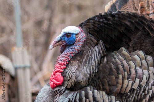 animal, avian, background, beak, beard, beautiful, bird, bird, birding, brown, canada, christmas, colourful, display, displaying, environment, feather, feather, fowl, game, gobble, gobbler, grass, green, hunting, iridescent, male, nature, outdoors, plumage, portrait, poultry, quebec, red, spring, strut, strutting, tail, thanksgiving, tom, turkey, wild, wildlife, wood