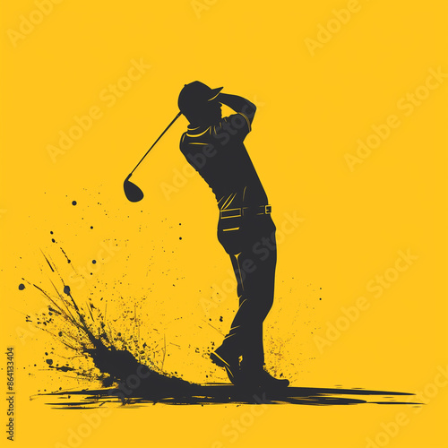 A man is playing golf and is about to hit the ball with his club. The image has a mood of excitement and anticipation, as the golfer is focused on his swing and the ball