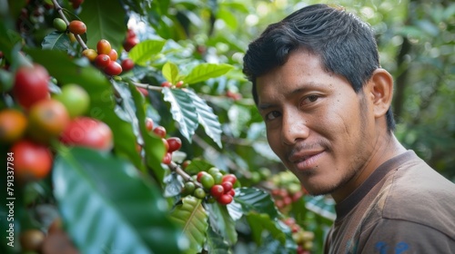 A man is smiling while holding a bunch of coffee berries