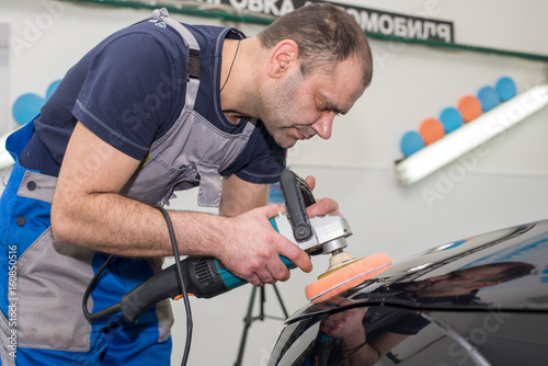 A man polishes a black car