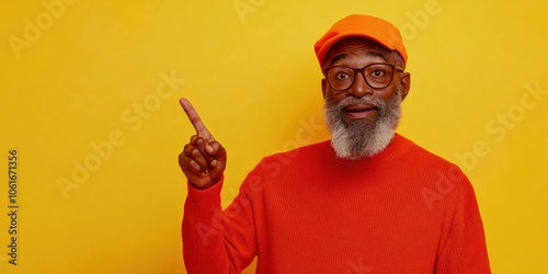 A man with a beard and glasses pointing at something, possibly giving directions or explaining something
