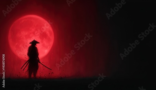 A man with a sword standing in front of a red moon