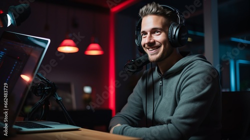 A man working with headphones and laptop computer