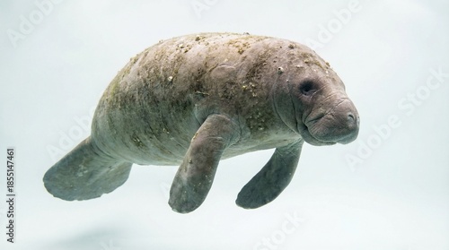 A manatee swimming peacefully isolated on a white background