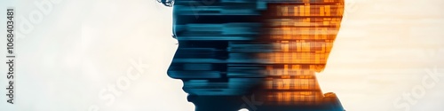 A man's face is shown in a blurry image with a city skyline in the background