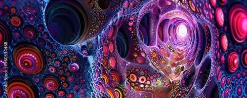 A mesmerizing abstract artwork featuring vibrant colors, swirling patterns, and dynamic shapes that evoke a sense of depth.