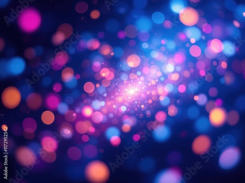 A mesmerizing bokeh effect displays vibrant blue and purple lights, creating a festive and energetic abstract background.